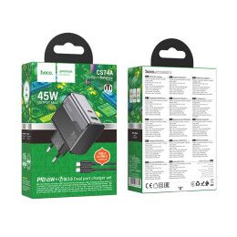 СЗП USB +Type-C HOCO CS74A Star Speed GaN Black Q.C./PD/AFC/SCP/PPS + Cable Type-C to Type-C 3A 45W