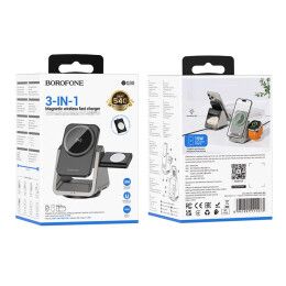 Безпровідний зарядний пристрій Type-C BOROFONE BQ30 Wide Gray 3 in 1 (Phone/Watch/AirPods) Magnetic