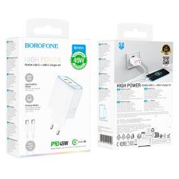 СЗП 2 Type-C BOROFONE BA90A Destello White Q.C./PD/AFC/SCP/PPS + Cable Type-C to Type-C 3A 45W