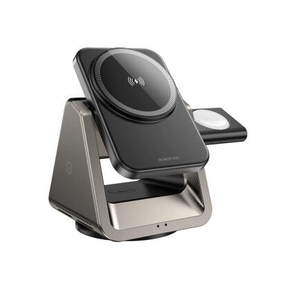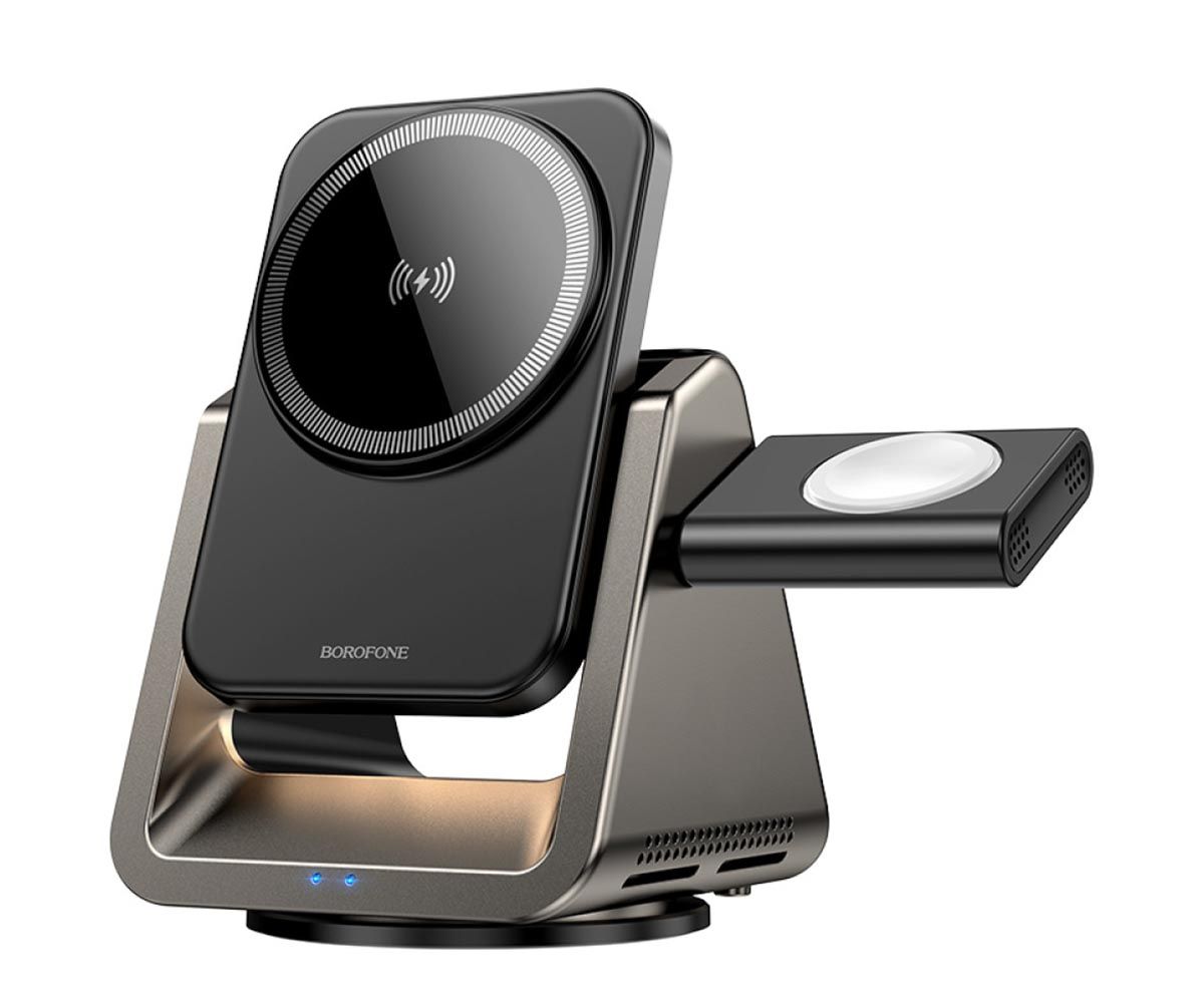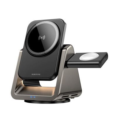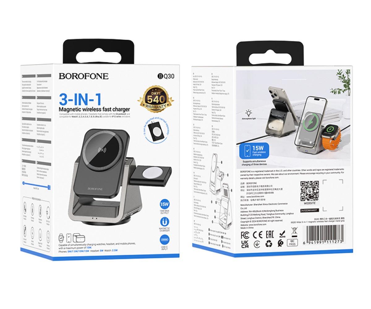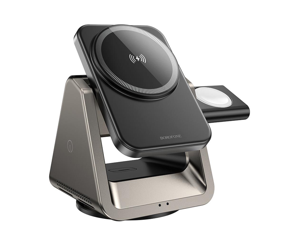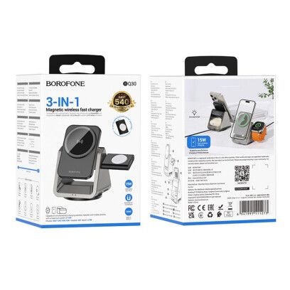 Безпровідний зарядний пристрій Type-C BOROFONE BQ30 Wide Gray 3 in 1 (Phone/Watch/AirPods) Magnetic