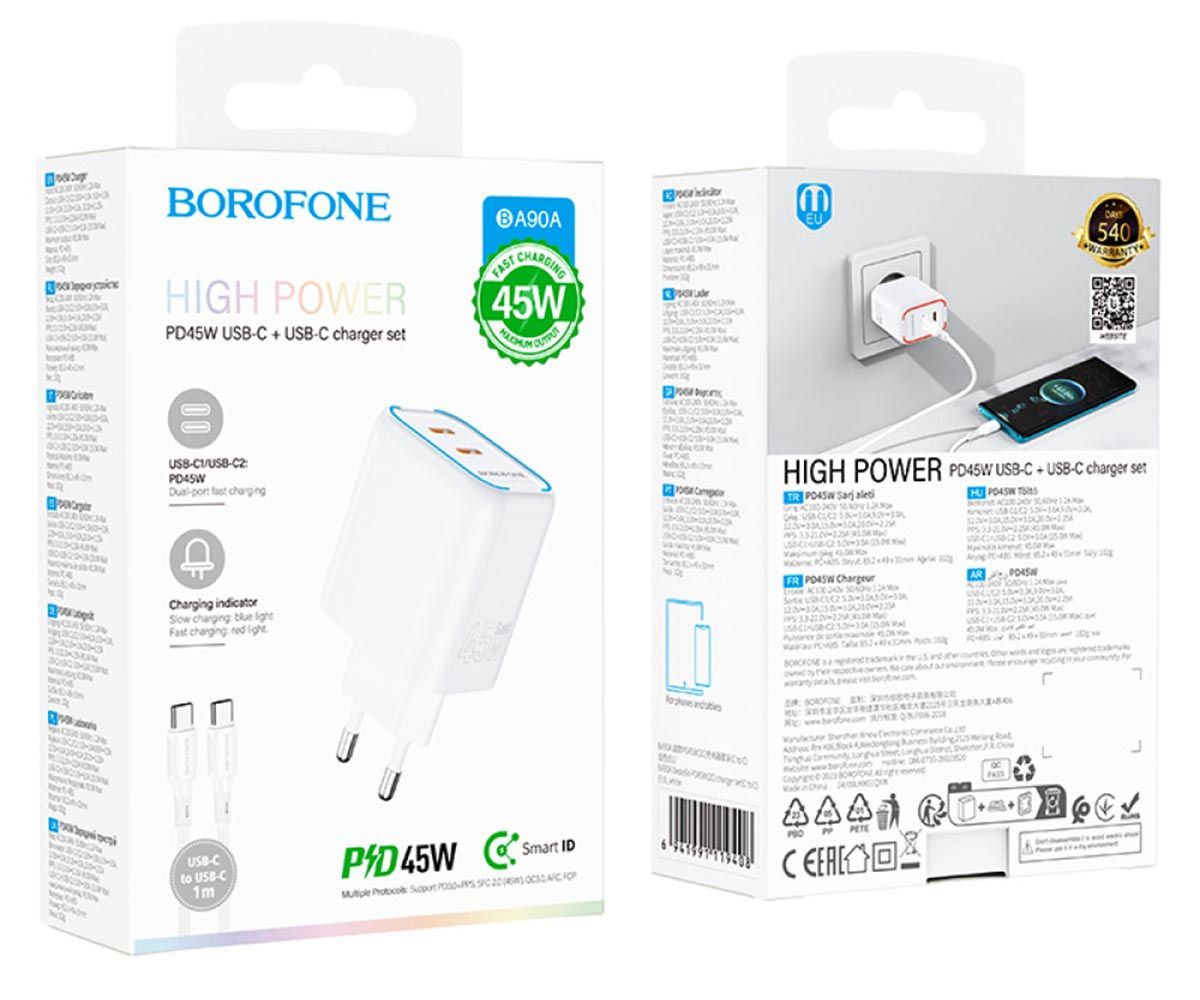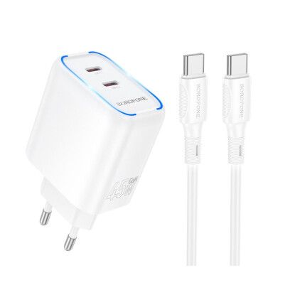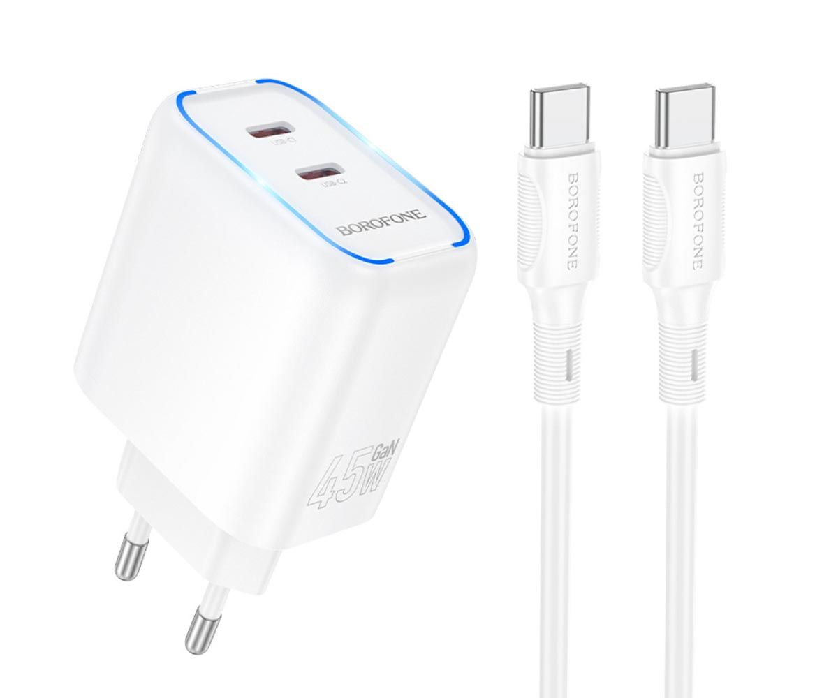 СЗП 2 Type-C BOROFONE BA90A Destello White Q.C./PD/AFC/SCP/PPS + Cable Type-C to Type-C 3A 45W