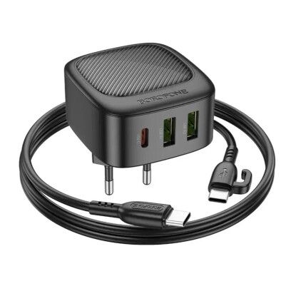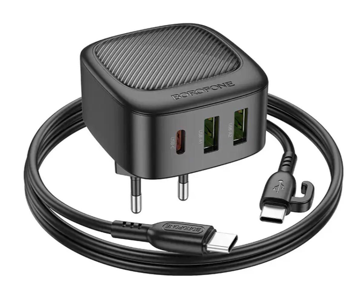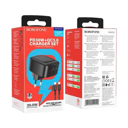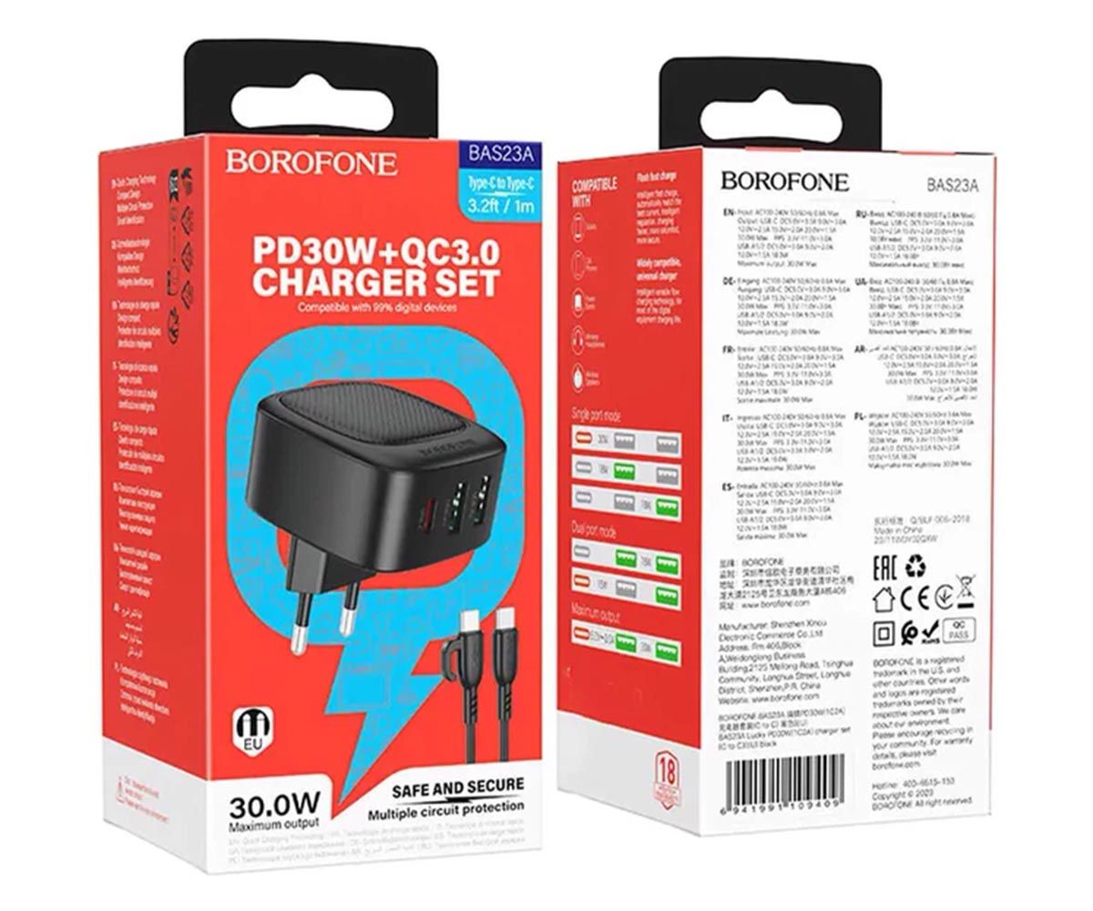СЗП 2 USB + Type C BOROFONE BAS23A Lucky Black + Cable TYPE-C to TYPE-C Q.C./PD/AFC/SCP 3A 30W