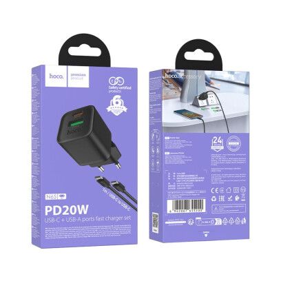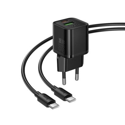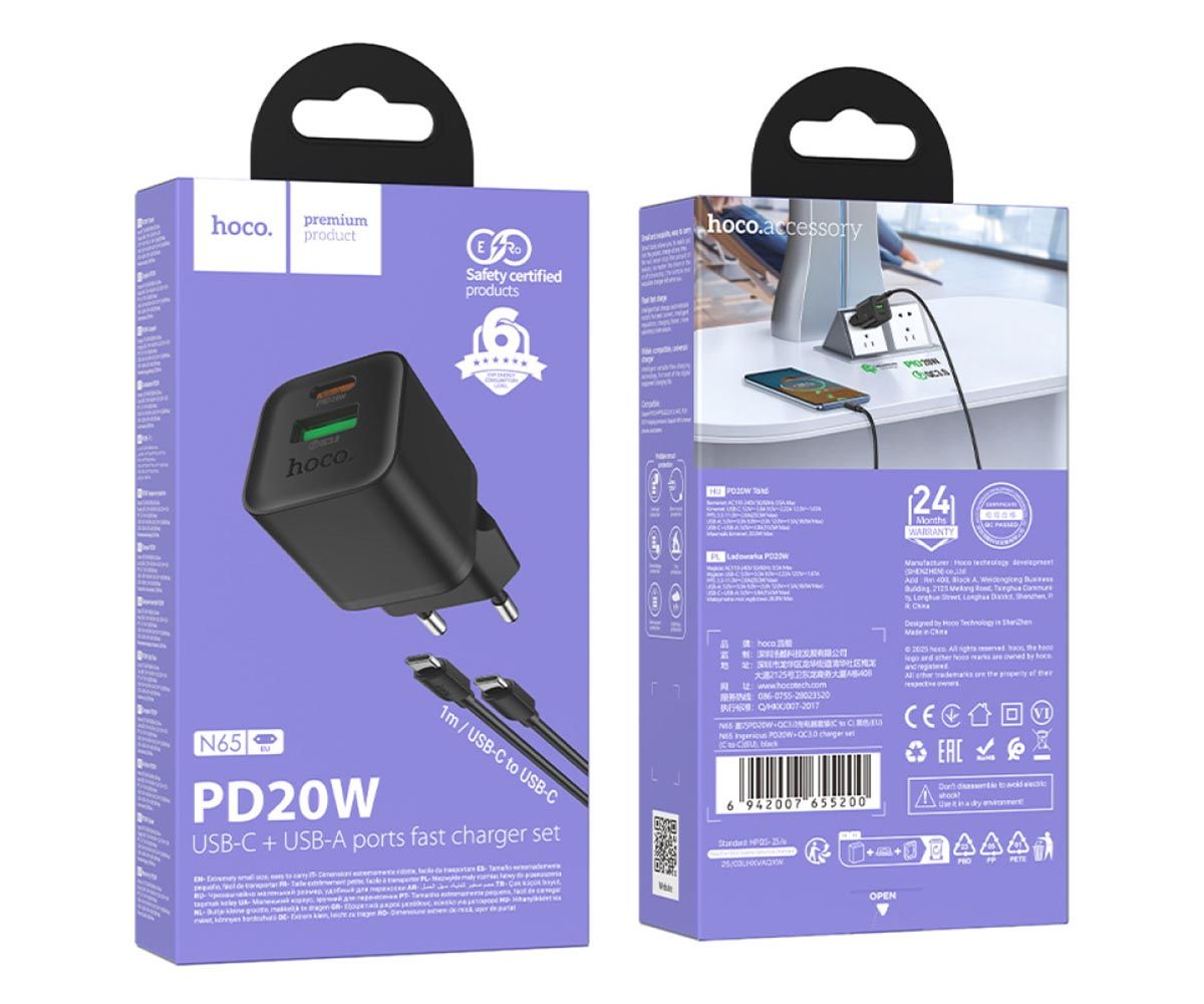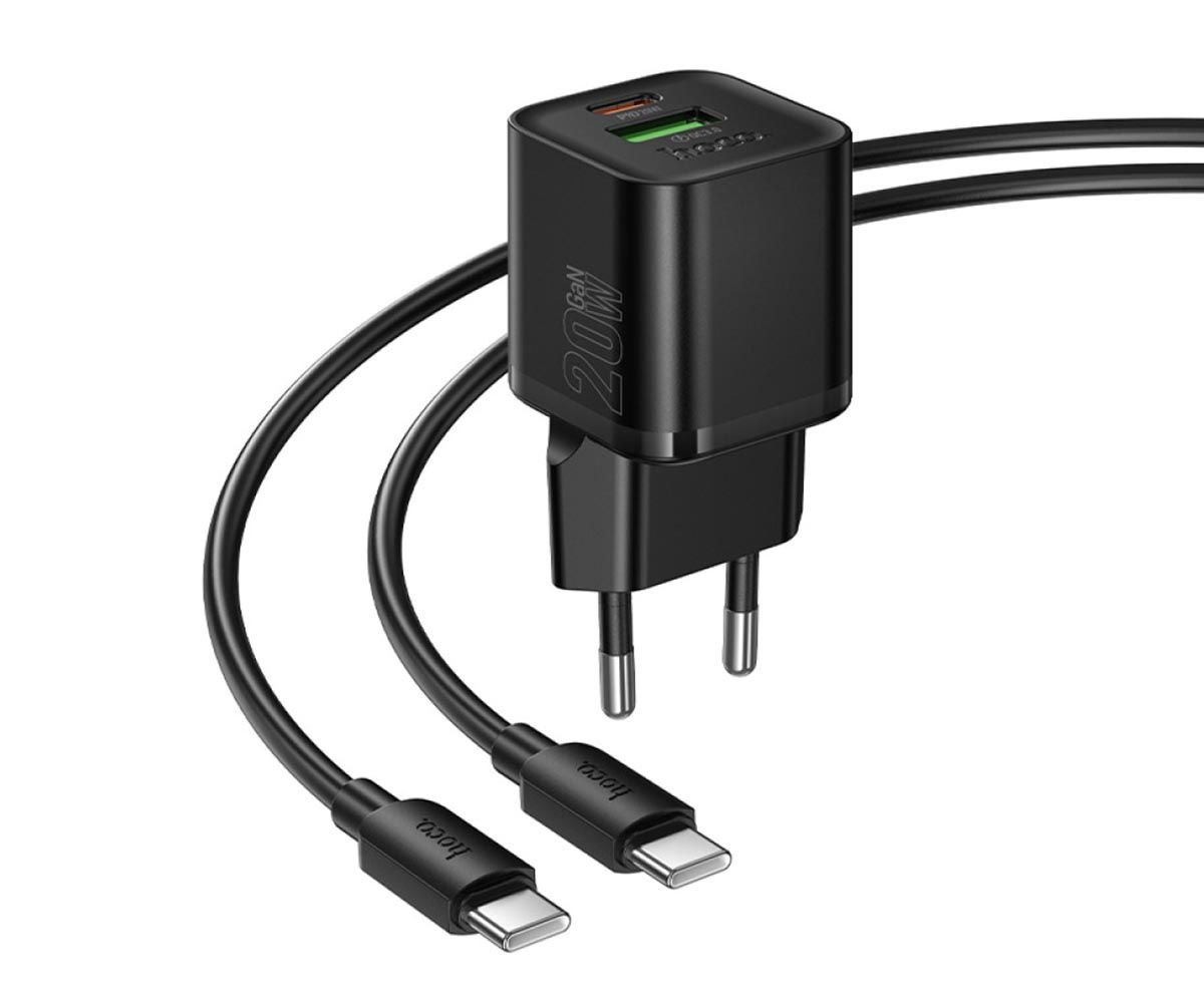 СЗП USB +Type-C HOCO N65 Ingenious GaN Black + Cable TYPE-C to TYPE-C Q.C./PD/AFC/SCP 3A 20W