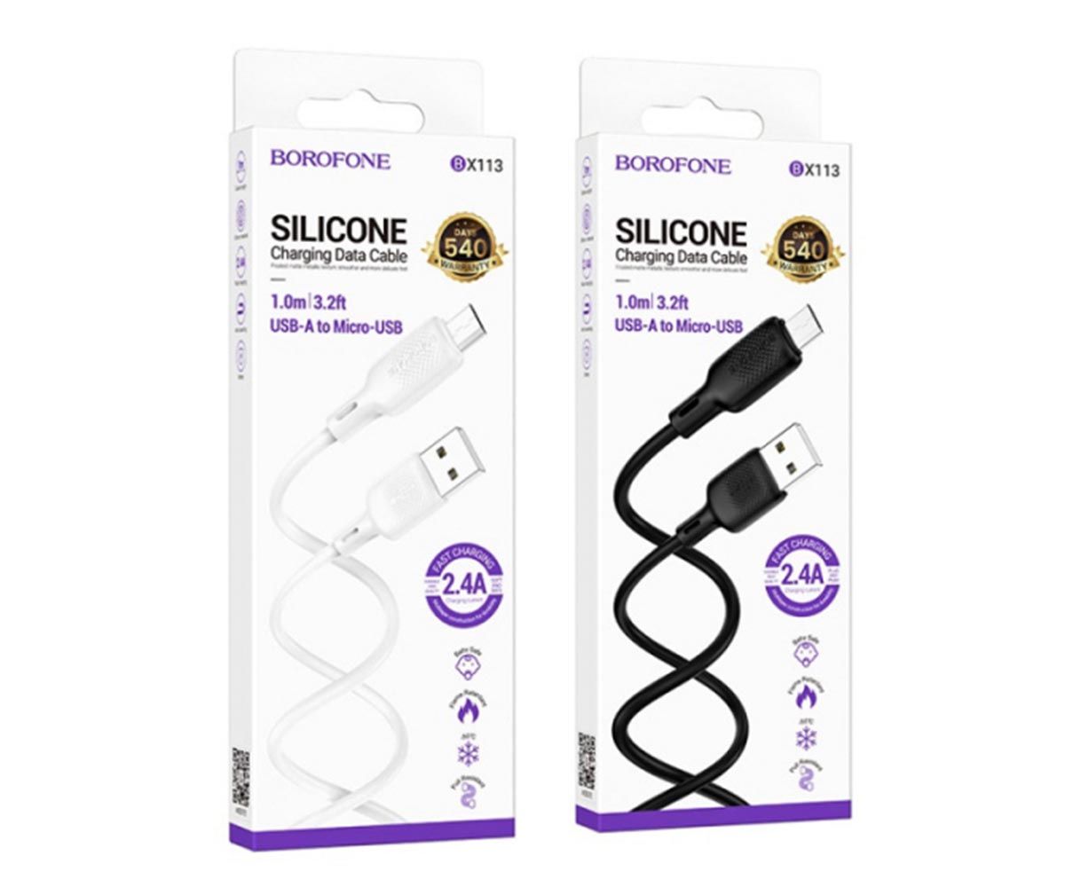 USB Кабель BOROFONE Micro USB White BX113 Lenny 1m Silicone 2.4А