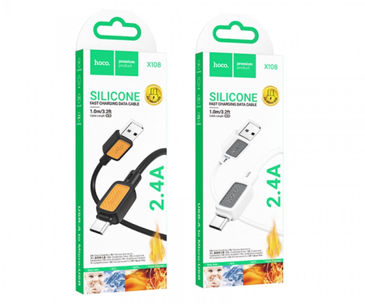 USB Кабель HOCO Micro USB Black X108 Benefit 1m Silicone 2.4А
